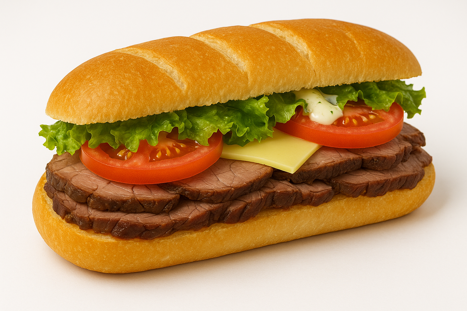 We believe in using only the freshest and highest-quality ingredients to make our Roast Beef Sandwich truly exceptional. The roast beef is expertly prepared to ensure peak tenderness and flavor, while the cheese provides a creamy and rich texture that complements the overall dish. Our lettuce is crisp and refreshing, adding a delightful crunch, and the tomatoes chosen for this recipe are ripe and juicy for a burst of natural taste. Every component is handpicked to ensure that your sandwich is as delicious as it is wholesome.